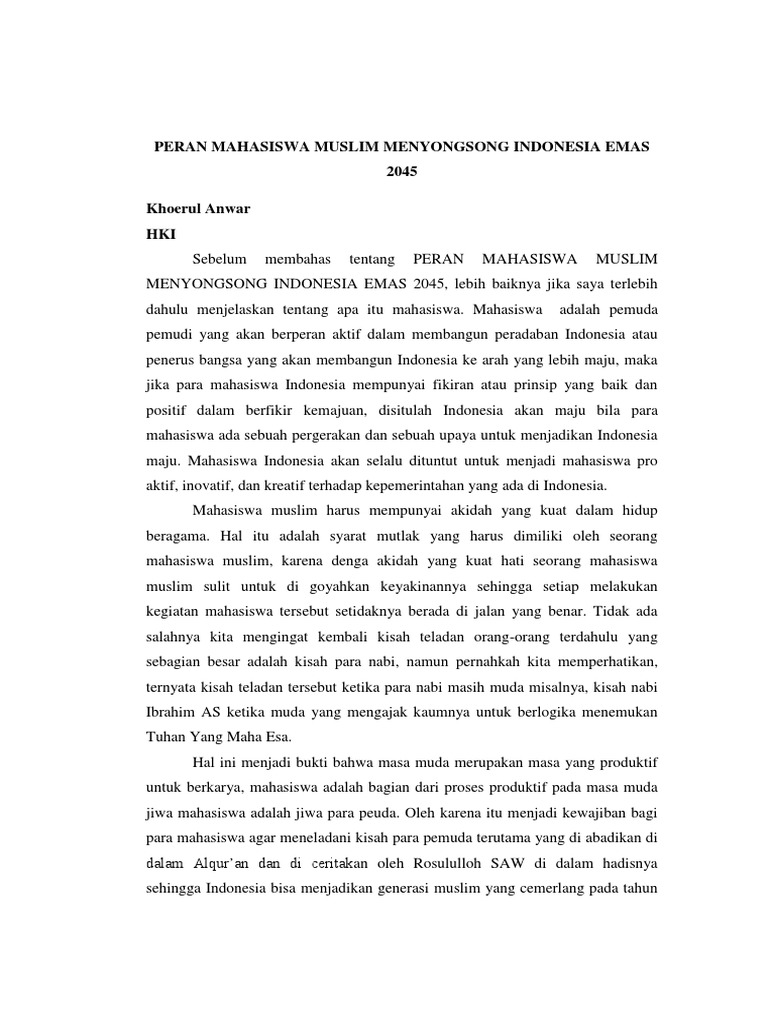 Peran Mahasiswa Muslim Menyongsong Indonesia Emas 2045