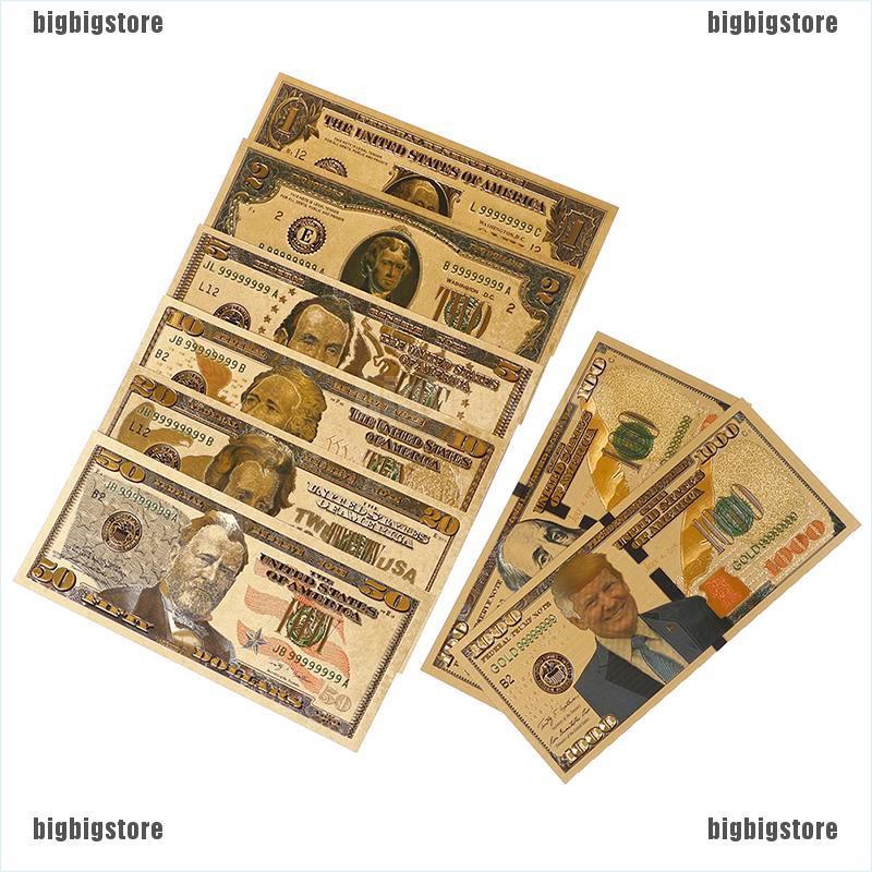 8Pcs / Set Uang Kertas Bentuk Uang Dollar Warna Emas